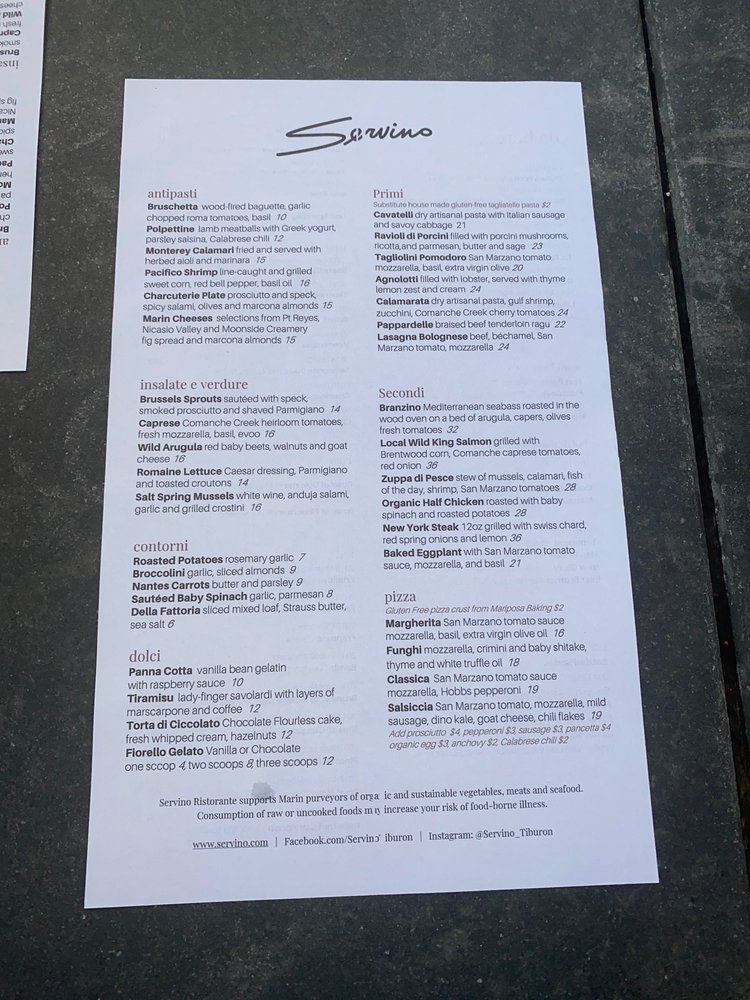 Introducing Servino Ristorante, a classy Italian restaurant located in Tiburon, CA. This establishment offers a variety of amenities, including outdoor seating, free Wi-Fi, and a full bar. Customers rave about the delectable Italian dishes and exceptional service provided by the staff. The menu features a range of options, from fresh pasta to juicy ribeye steaks. Reviews highlight the generous portion sizes and the extensive wine list, catering to all preferences. Whether you're looking for a casual dinner or a special night out, Servino Ristorante promises a memorable dining experience. Don't miss out on their happy hour specials and cozy ambiance. Visit Servino Ristorante for a taste of authentic Italian cuisine in a welcoming setting.